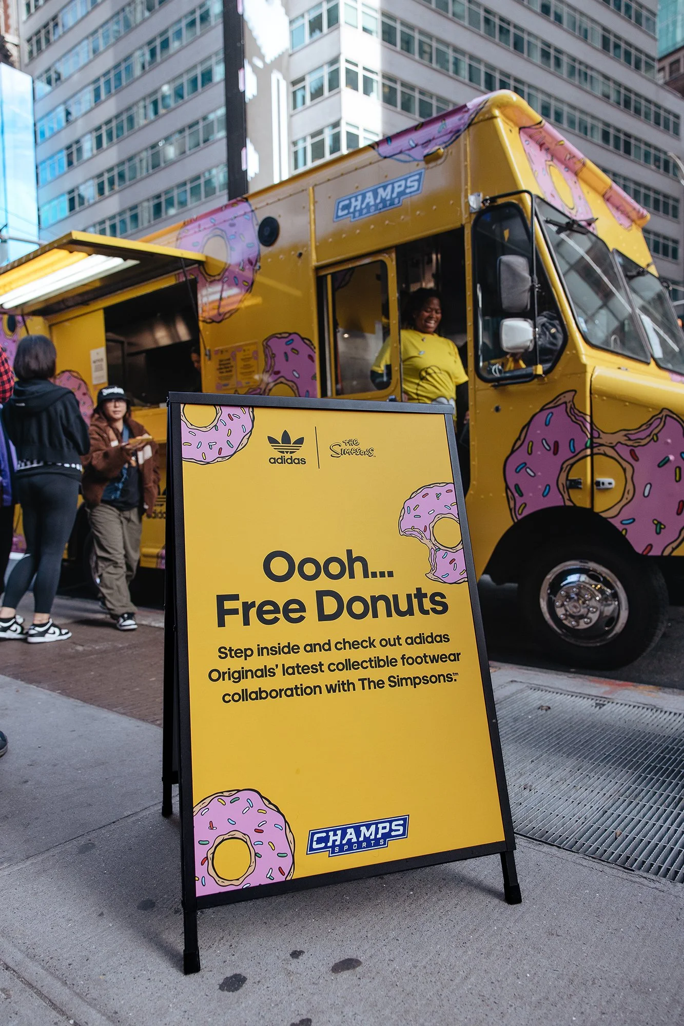 My team at Happylucky concepted and produced a campaign for adidas Originals’ launch of their latest Simpsons collaboration, then created retail experiences around it for Champs and Foot Locker in Times Square. It was a sensorial experience with free donuts, Simpsons themed photo opportunities and exclusive in-store giveaways.
