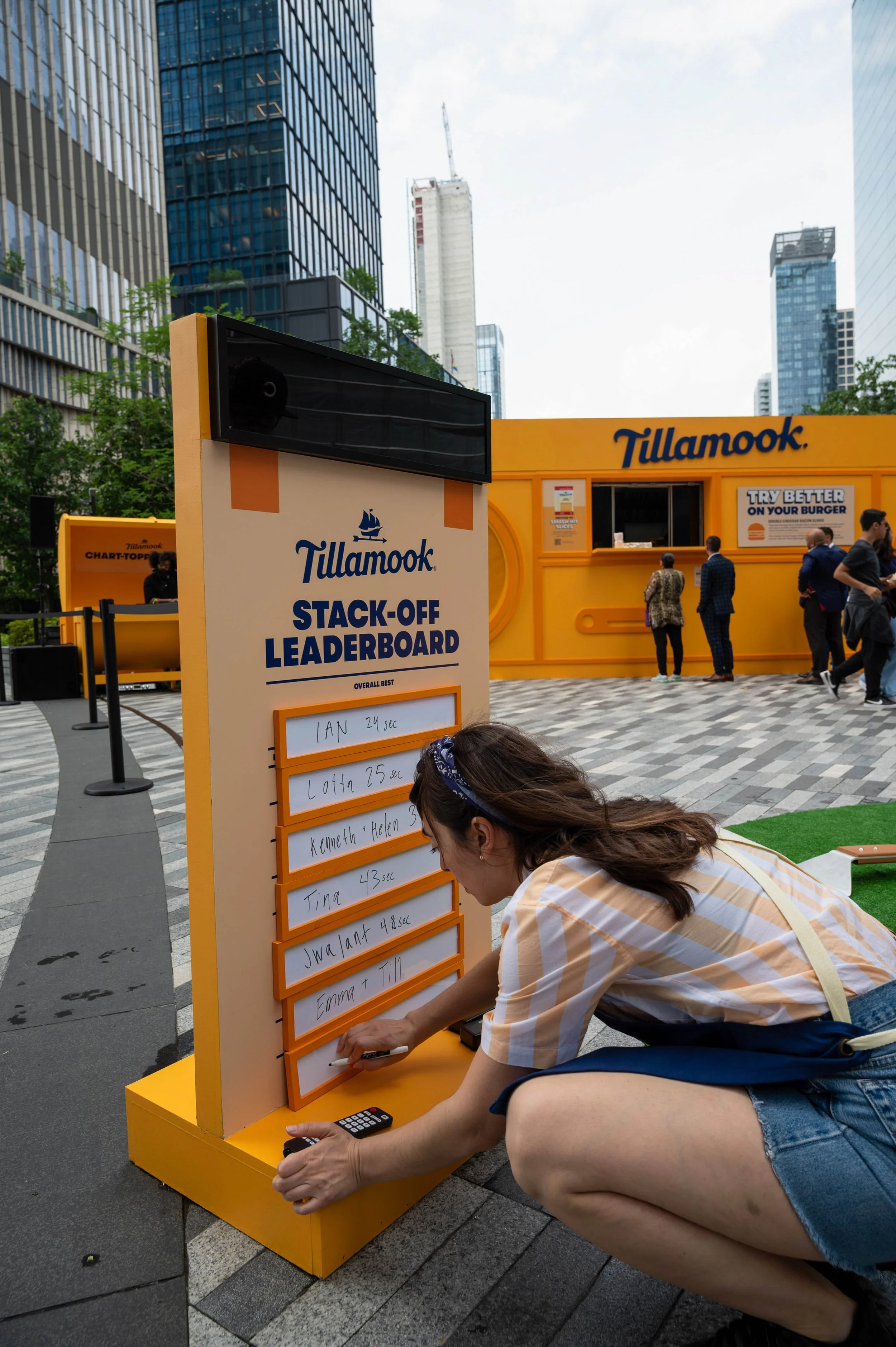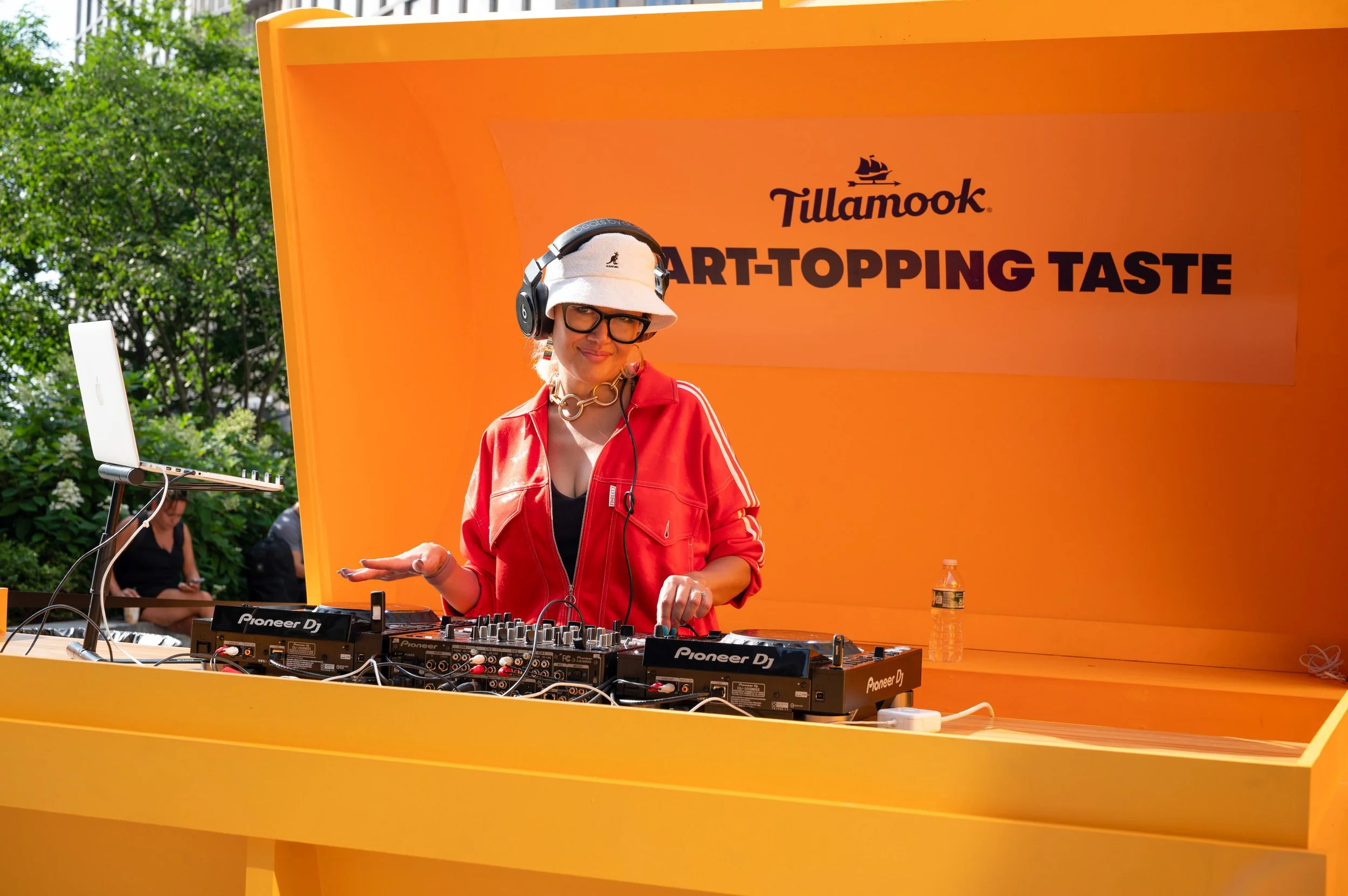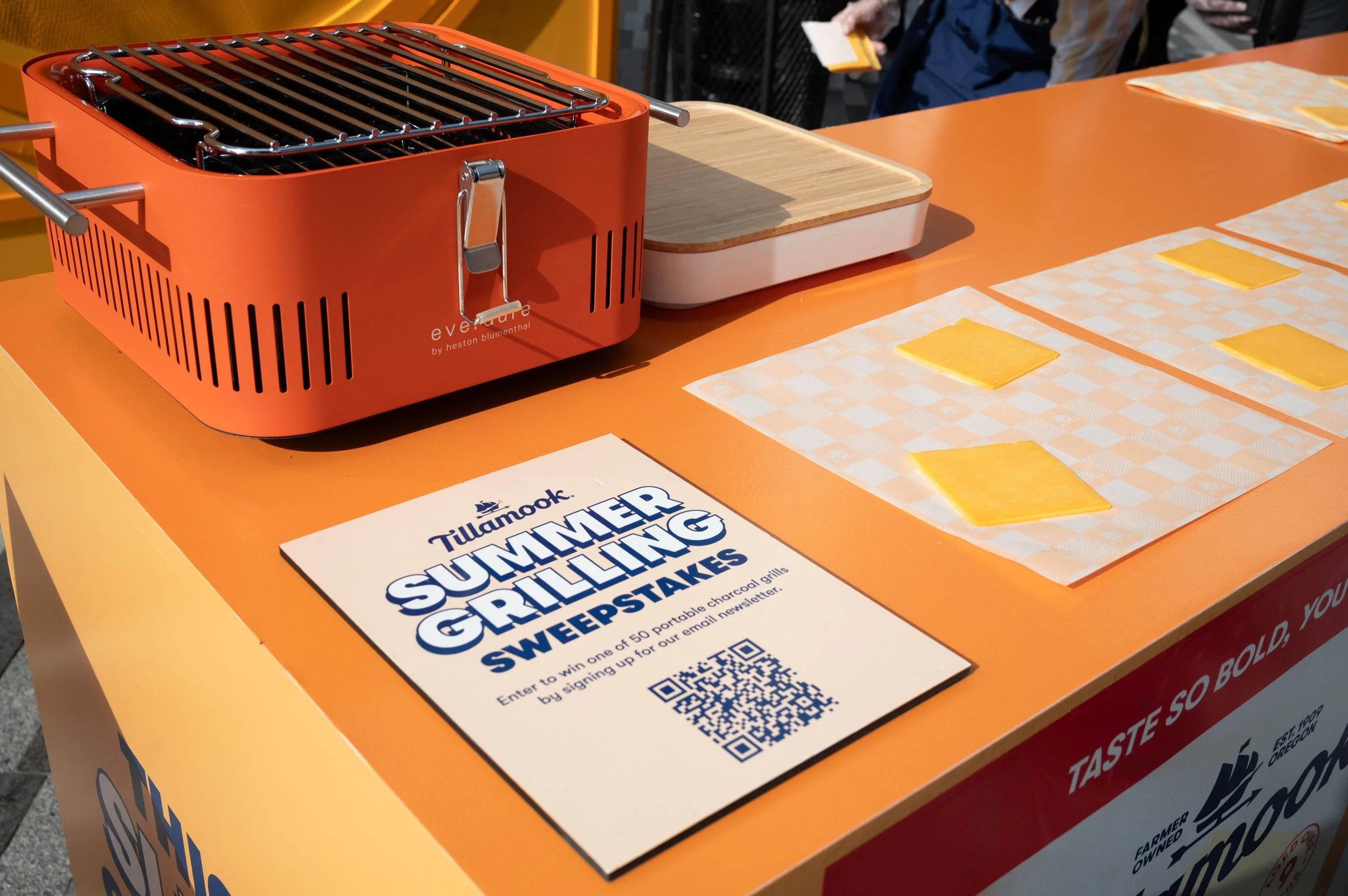 Tillamook Slices was a pop-up event with block party vibes held at Hudson Yards in NYC. The event engaged guests with games and showcased Tillamook Slices, cheddar cut thick, during the week before July 4th as the go-to choice for upping their burger game. The food truck was made into a giant boombox and photo op, and the oversized BBQ grill worked as both a DJ booth and demo area for chef influencers to showcase how to make their perfect burger recipe.